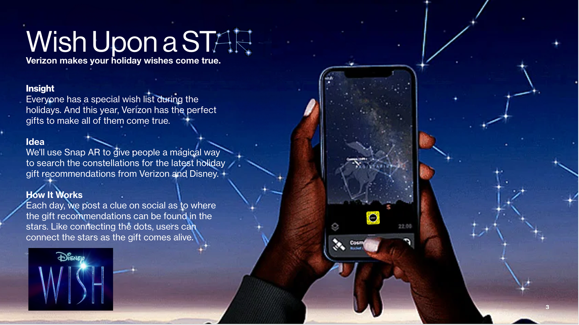 For a holiday social activation, I created the concept and design for an interactive Snap AR experience. By allowing users to discover personalized constellations with curated gift recommendations, the project provided immersive brand engagement and ultimately led to increased device sales.