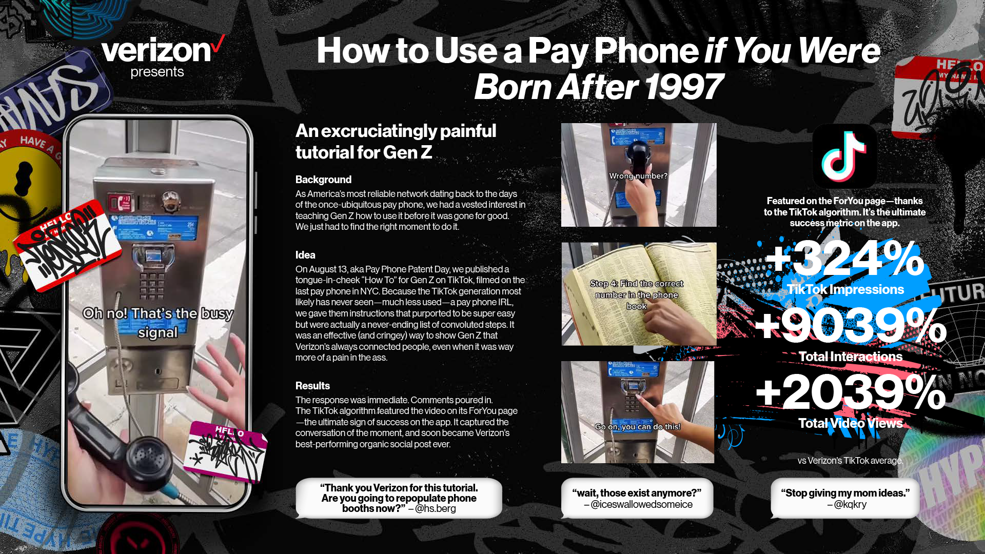 To celebrate Pay Phone Patent Day on August 13, produced a playful, tongue-in-cheek TikTok contents filmed at the last pay phone in NYC. Created a “How-To” for Gen Z, humorously presenting an endless list of convoluted steps to use a pay phone — engaging younger audiences with clever, nostalgic storytelling.